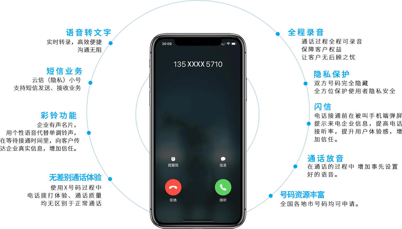 特点:一对多场景下对单方号码进行隐私保护